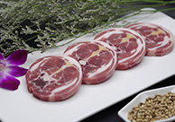 精選羔羊后腿,整形預凍后鋸切,切片厚度0.8-1.2cm,脂肪厚度0.5-1cm,肉質鮮香,形態美觀,適合煎烤。