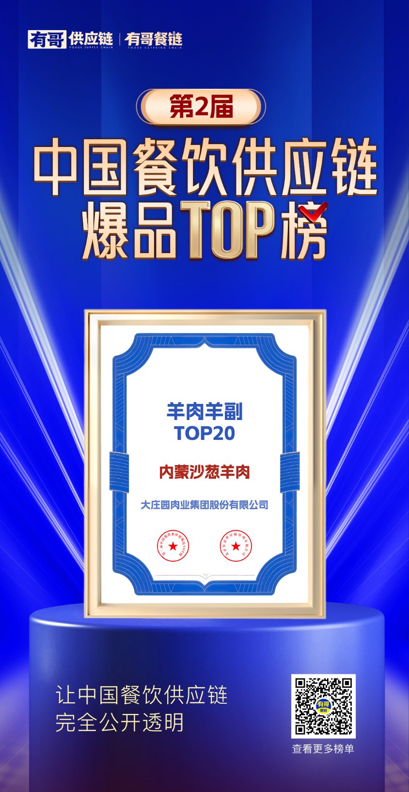 大莊園入圍“第三屆中國餐飲產業紅牛獎-2023年度肉禽供應鏈企業TOP10”!