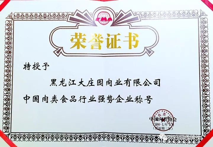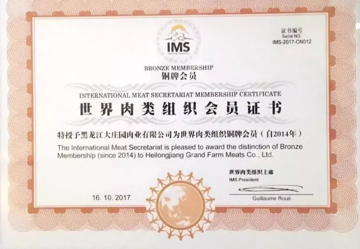 【實力收獲榮譽】大莊園獲世界肉類組織會員、中國肉類食品行業強勢企業稱號