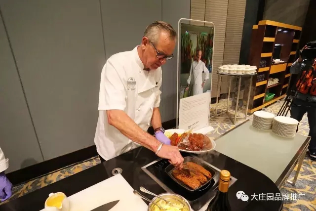 本次產品推薦會上最吸引人的環節就是來自澳大利亞阿米莉亞首席廚師長尼爾.杰克遜親臨現場并制作食材,尼爾是澳大利亞“國寶級”廚師,被授予澳大利亞餐飲貢獻終身成就獎,對澳大利亞餐飲行業做出了突出貢獻。此次,尼爾來到中國哈爾濱,現場為大莊園尊貴的客戶制作最正宗的澳洲風味。不同的產品在尼爾的手下散發出不一樣的感覺,仿佛一場魔術,經過變幻絕倫的手法,讓每一個產品都散發不同的魅力。