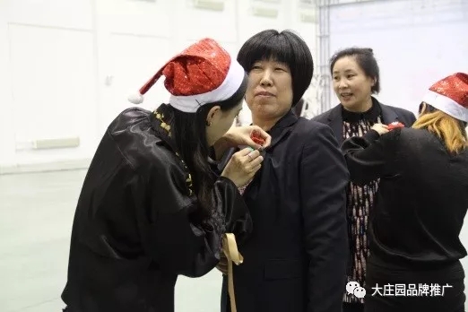 工作人員為邱麗霞總經理佩戴節日標志